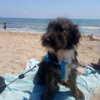 Al pequeño le encanta salir a la calle, te lo puedes llevar a cualquier terraza y se queda acostado a tu lado, los gatos le dan un poco de miedo pero convive bien con ellos y con otros perros se lleva genial.